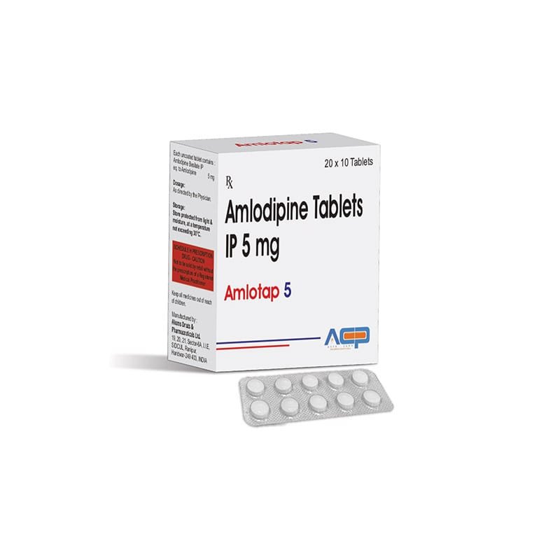 Detail:-Amlotap 5 mg Tablet (Amlodipine 5 mg) by Asto Care Pharma for effective management of hypertension and angina.