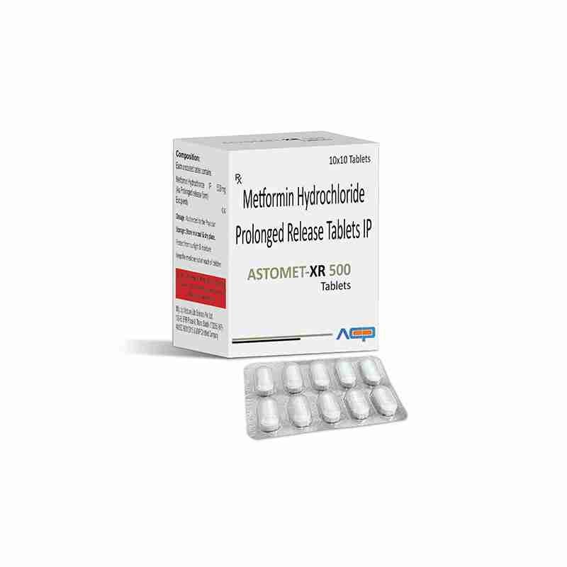 Detail:-ASTOMET XR 500 is an extended-release Metformin tablet used to manage type 2 diabetes by controlling blood sugar levels and improving insulin response.