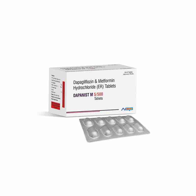 Detail:-DAPANIST M 5/500 combines Dapagliflozin and Metformin to help control blood sugar in adults with type 2 diabetes, improving glycemic control effectively.