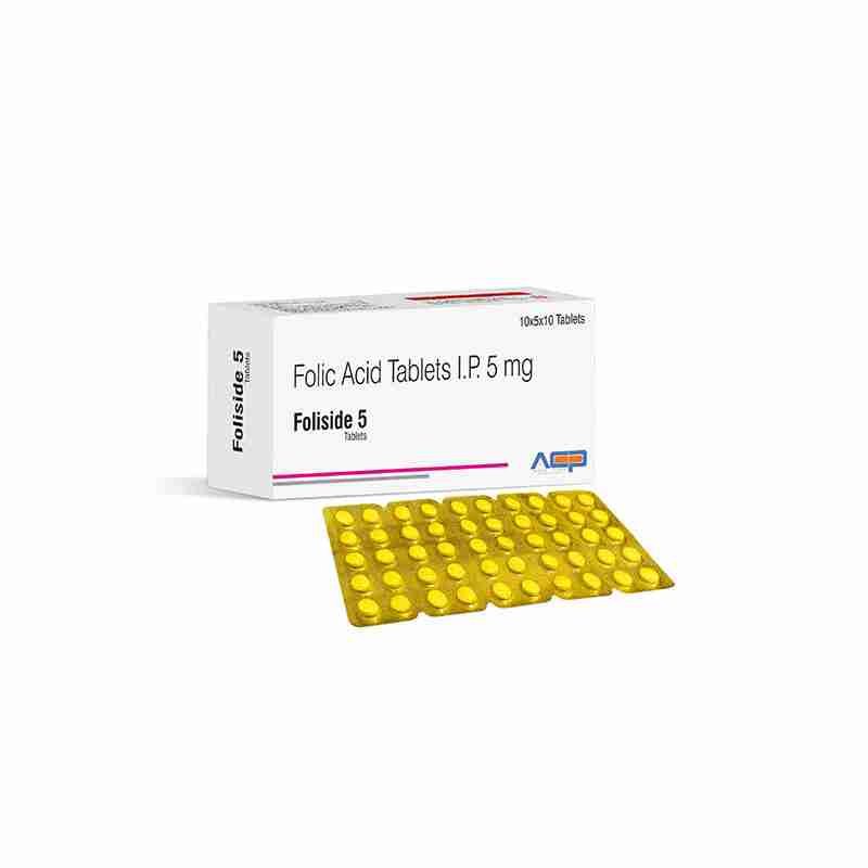 Detail:-Foliside-5 tablets with Folic Acid 5 mg support healthy blood formation and nutritional balance. Quality folate supplement by Asto Care Pharma.
