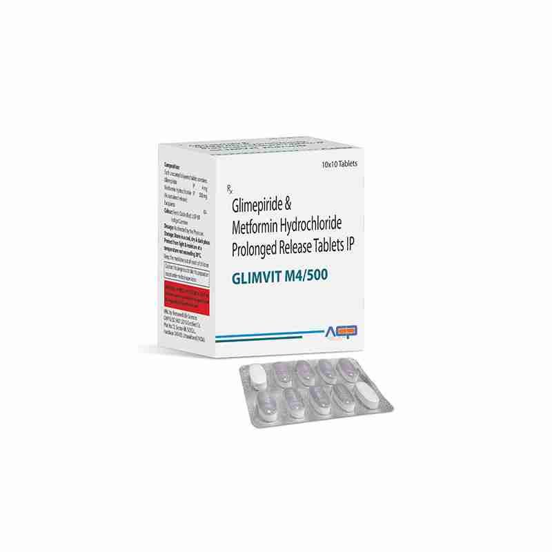 Detail:-GLIMVIT M4/500 by Asto Care Pharmaceutical helps manage Type 2 Diabetes by regulating blood sugar levels and improving insulin efficiency for better glucose control.