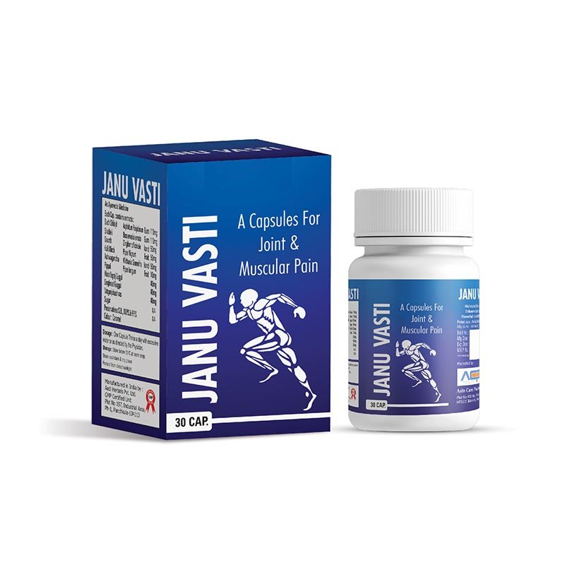 Detail:-JANUVASTI Cap from Asto Care – an herbal formulation for relief of joint and muscular pain, provided in a 30‑capsule mono pack.