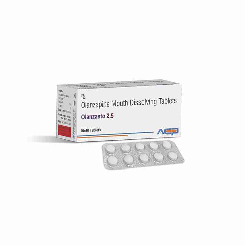 Detail:-Olanzasto‑2.5 Tablet contains Olanzapine 2.5 mg, an atypical antipsychotic used for schizophrenia and bipolar disorder management.