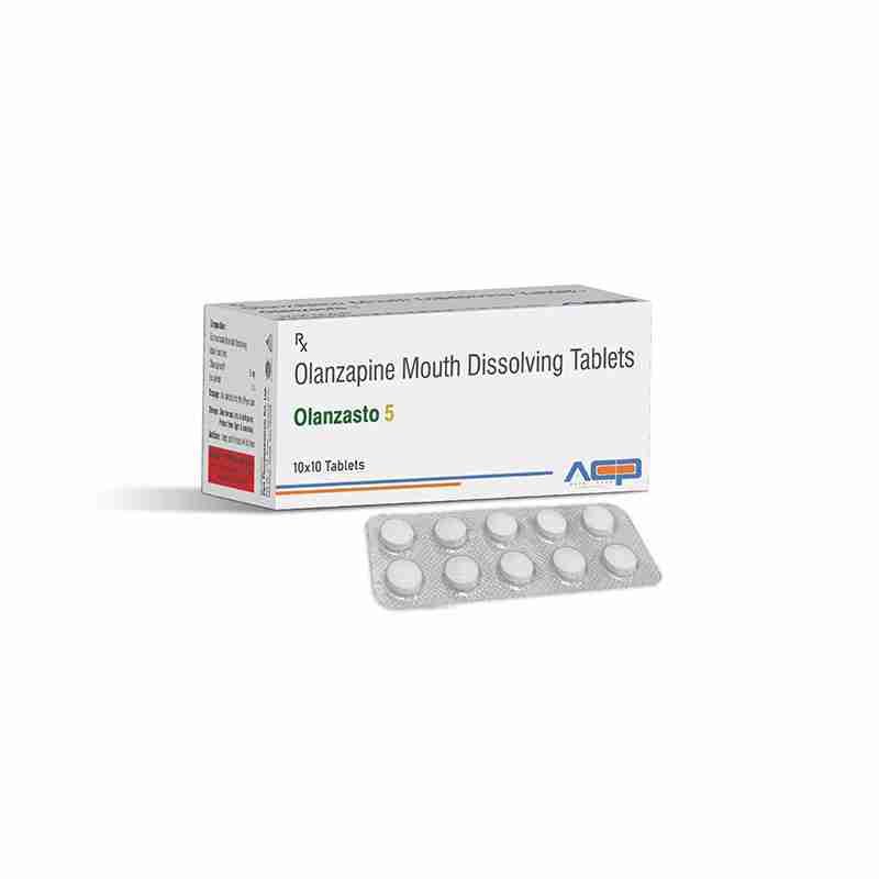 Detail:-Olanzasto‑5 Tablet contains Olanzapine 5 mg, an atypical antipsychotic for the treatment of schizophrenia and bipolar disorder.