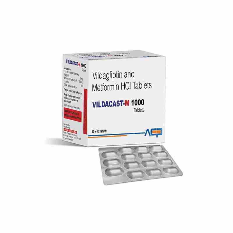 Detail:-VILDACAST M 1000 by Asto Care Pharmaceutical helps manage Type 2 Diabetes by controlling blood sugar levels and improving glycemic balance.