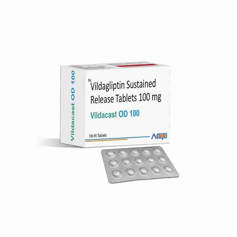 Detail:-VILDACAST OD 100 by Asto Care Pharmaceutical helps manage Type 2 Diabetes by maintaining optimal blood sugar levels for better glycemic control.
